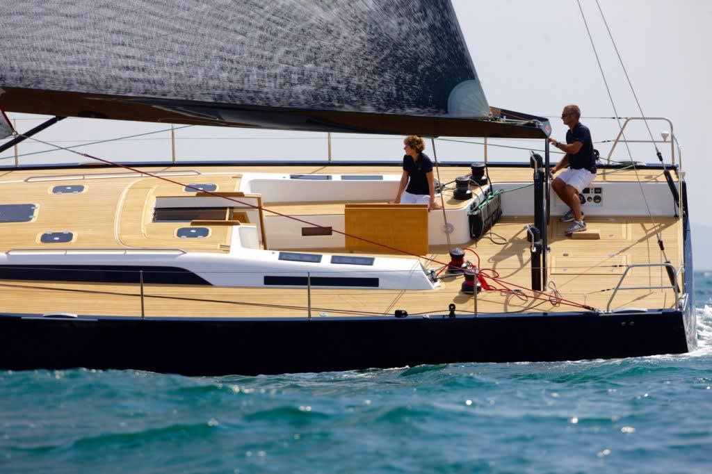 Het teakhouten dek geeft de Solaris 58 het uiterlijk van een super jacht zonder iets van haarelegantie te verliezen. Alle lijnen zijn teruggebracht naar de schipper positie in de kuip, waardoor hetvrij eenvoudig is om de zeilen ook met een kleine bemanning te hanteren.
